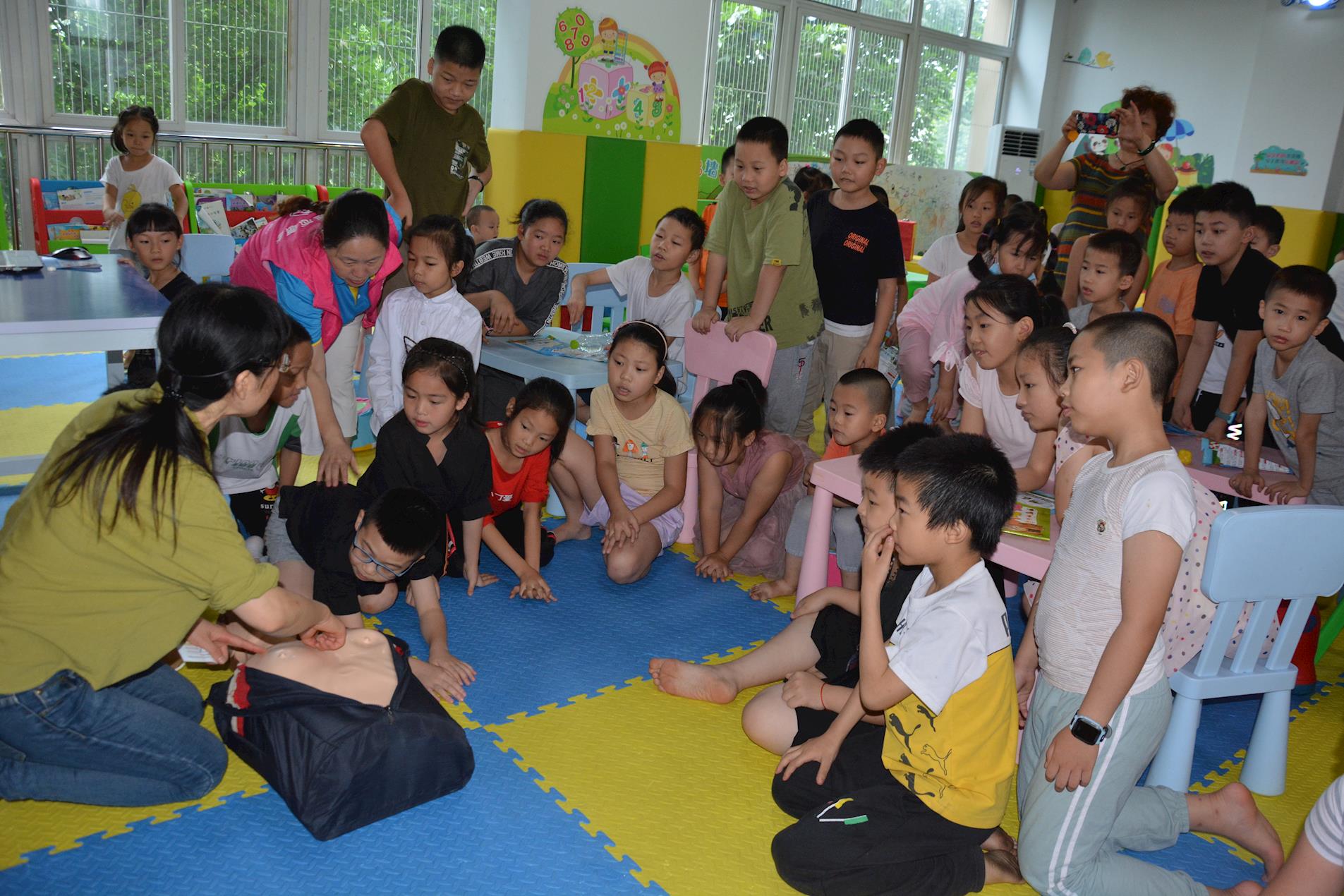 同時,謝周群老師利用假人模型向小朋友和家長們現(xiàn)場演示了溺水施救、人工呼吸、心肺復(fù)蘇的施救動作要領(lǐng),并讓小朋友們親自操作學(xué)習(xí)急救手法,以生動形象的方式讓他們更加深入地掌握和理解防溺水安全知識及各種救援方法。現(xiàn)場的小朋友和家長們認(rèn)真聆聽并積極參與,氣氛十分熱烈。