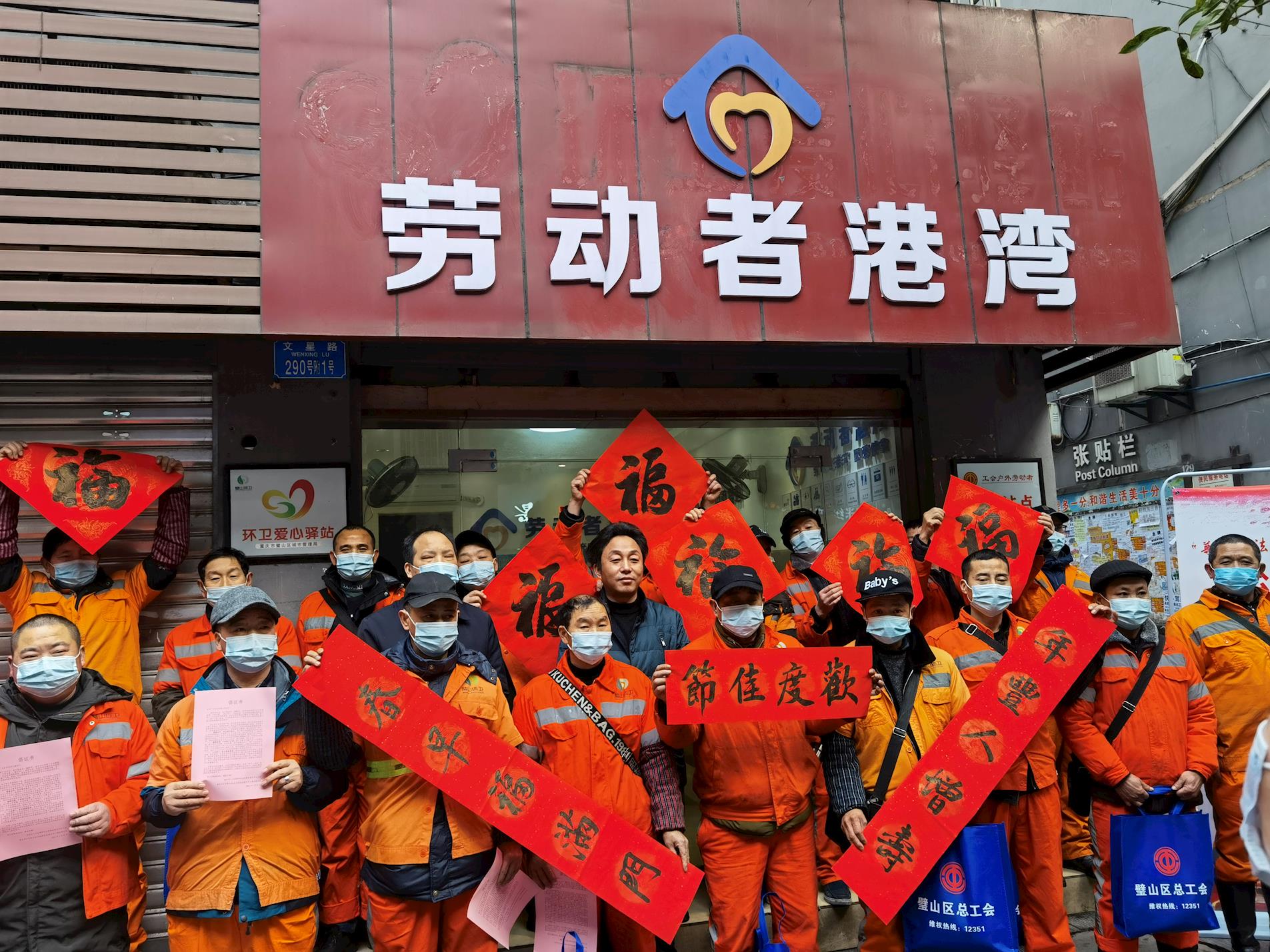 1月28日,璧山區總工會走進工會戶外勞動者服務站點,開展“尊法守法·攜手筑夢”服務農民工普法宣傳活動,為600余名環衛工人送上裝有《民法典》《保障農民工工資支付條例》等普法宣傳資料和春聯、湯圓等春節福禮的“新春大禮包”,把工會“娘家人”的關懷送到環衛工人的心里。