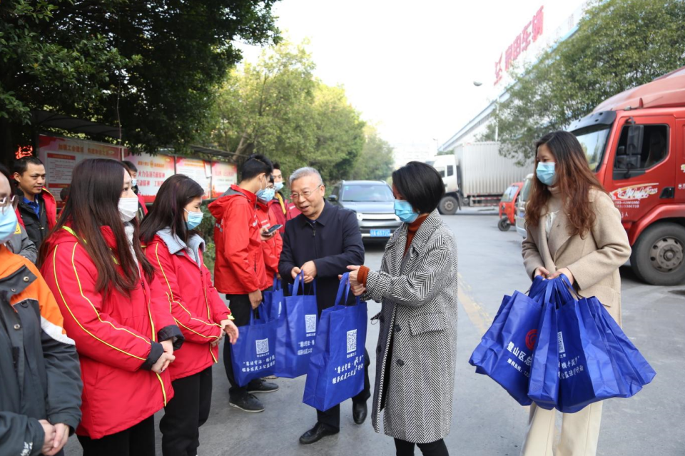 11月10日,璧山區人大常委會副主任、區總工會主席劉啟海帶領區總工會工作人員到申通、韻達、圓通等快遞企業,為堅守一線、起早貪黑的快遞小哥們送去防疫“禮包”。 在慰問現場,劉啟海向辛勤工作的快遞員們表示感謝,鼓勵他們繼續弘揚“戰嚴寒,拼酷暑”的優良傳統,戰勝快遞高峰壓力,并同他們進行親切交談,囑咐他們做好個人防護,注意出行安全和身體健康。快遞小哥們紛紛表示,區總工會的關心讓在外奔波的他們找到“家”的依靠。隨后,慰問組先后來到餓了么、美團外賣、普惠網約車璧山分公司等企業,為外賣小哥、網約車司機、貨車司機等新就業形態勞動者送上了防疫“禮包”。