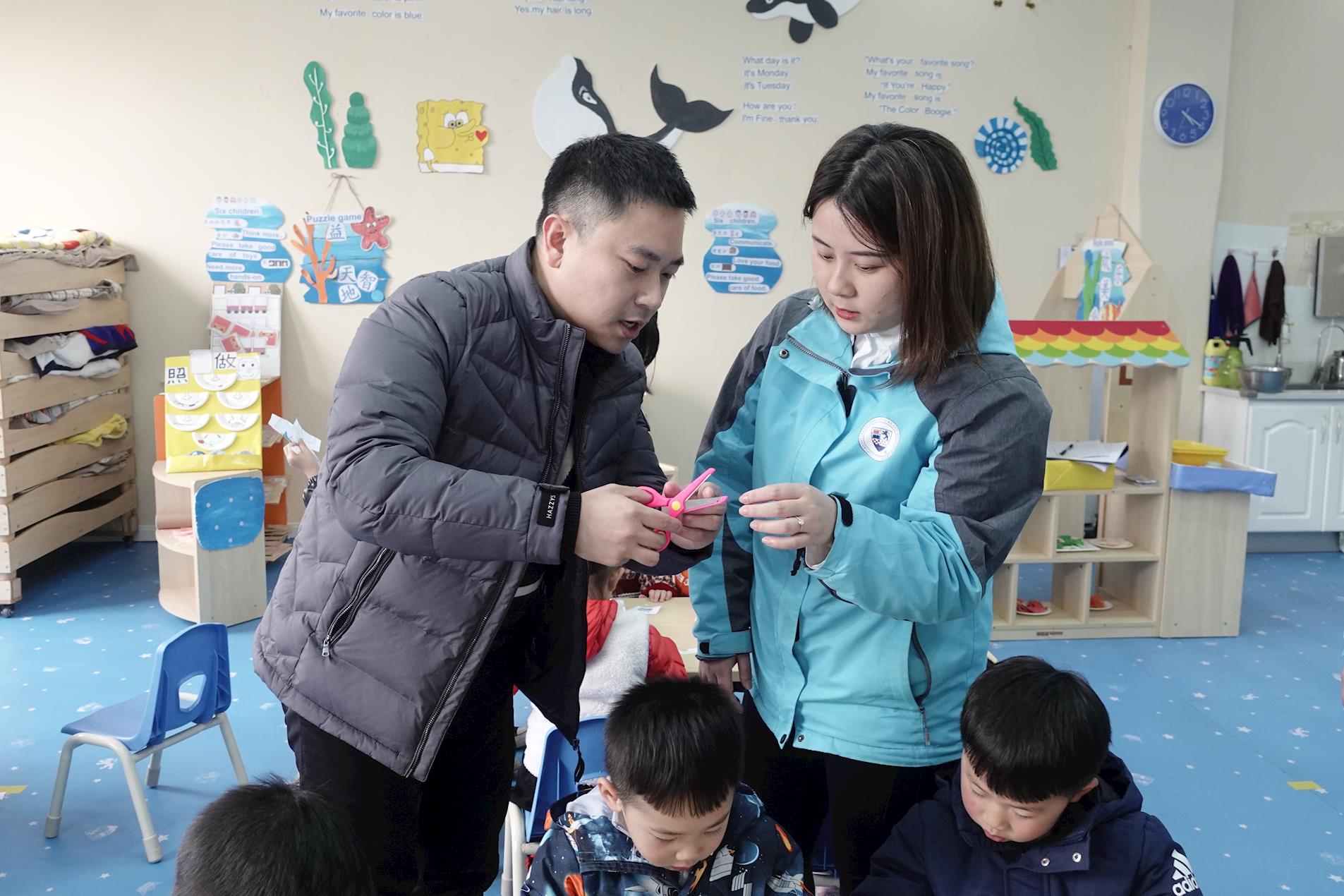 “這種剪刀要換一下,孩子們使用起來有安全隱患。”3月4日,在檢查一所幼兒園工作時,細心的徐健鏵立即要求道。