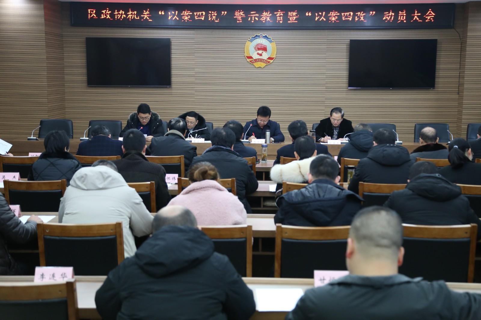 1月28日,根據區委“以案四改”實施辦法和派駐區委辦紀檢監察組的相關要求,區政協機關召開“以案四說”警示教育暨“以案四改”動員大會,政協機關全體干部職工參加會議。