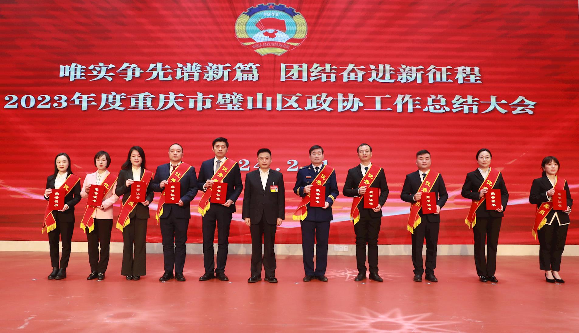 秦文敏代表區委、區人大、區政府,向獲獎單位和個人表示熱烈的祝賀,并向奮戰在全區經濟社會建設各條戰線上的政協委員和各民主黨派、工商聯、無黨派人士致以誠摯的問候。他指出,過去一年,區政協堅持建言資政和凝聚共識雙向發力,深入開展調查研究、協商議政、民主監督,推動“渝事好商量·璧有您參與”和“三級院壩會”有機融合,一大批高質量調研成果轉化為“五新四城”建設的良策實招,彰顯了政協新擔當、展現了政協新氣象。