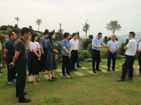 在東坡區復興鎮白塔村光寶園公墓,考察組實地了解了光寶園公益性公墓建設規模、經營管理方式、墓穴設置方式和占地面積、配套基礎設施、收費標準等情況。在眉山市殯儀館,考察組參觀了廉潔清明警示長廊、各告別廳、服務登記窗口、生命教育館、業務大廳等區域,詳細了解了眉山市殯儀館在綠色殯葬、生命文化教育、打造殯葬文化品牌等方面的具體舉措。