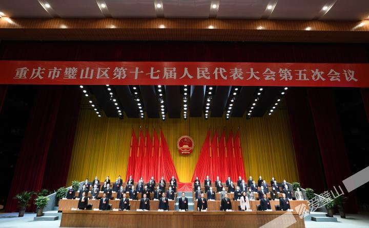 2月27日下午,在莊嚴(yán)的國(guó)歌聲中,區(qū)十七屆人大五次會(huì)議在璧山中學(xué)楓香湖校區(qū)隆重開幕。區(qū)長(zhǎng)秦文敏代表區(qū)人民政府作《政府工作報(bào)告》。