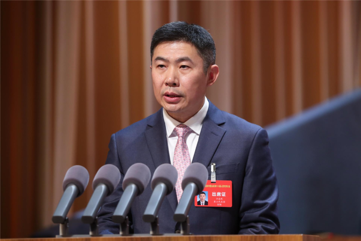在熱烈的掌聲中,江志斌代表區(qū)人民政府向大會作政府工作報告。報告分三個部分:2022年工作回顧;新時代、新征程、新要求;2023年主要工作。