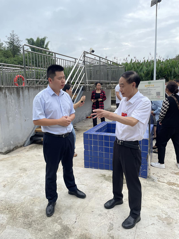張獻強與區人大代表河邊小組全體成員一起,視察了新四村上壩河農村面源污染濕地管控情況、河邊鎮污水處理廠城鎮污水處置情況,隨后召開座談會,聽取河邊鎮貫徹落實《長江保護法》和《重慶市水污染防治條例》的相關情況匯報。